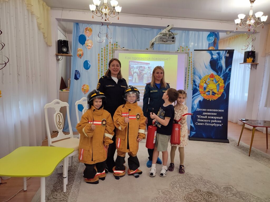 В Невском районе сотрудники СПб ГКУ «ПСО Невского района» совместно с представителями Управления Невского района ГУ МЧС России по г. Санкт-Петербургу и Невским отделением Санкт-Петербургского Всероссийского Добровольного Пожарного Общества провели открытый урок в ГБДОУ детский сад № 94 Невского района Санкт-Петербурга. Ребятам рассказали об основных правилах пожарной безопасности, правилах поведения в природной среде, безопасного поведения на водных объектах, действиях при возникновении пожара. Провели мастер класс по правилам пользования огнетушителем. Воспитанники детского сада отгадывали загадки на пожарную тематику, примеряли боевое обмундирование пожарных. Малышам напомнили телефоны пожарной охраны 01, 101, 112. По окончании урока детям вручили агитационный материал в виде книжек с наклейками «Пожарная машинка».