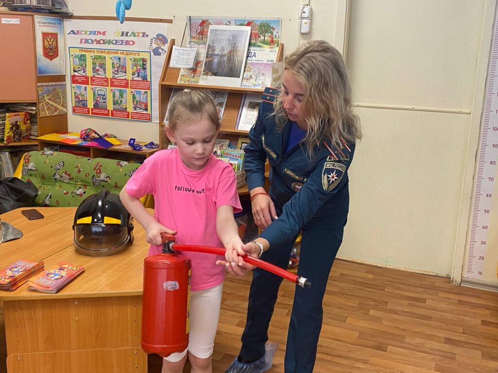 Ребята приняли активное участие: отгадывали пожарные загадки, примеряли боевое обмундирование пожарных и прошли мастер-класс по использованию огнетушителя.