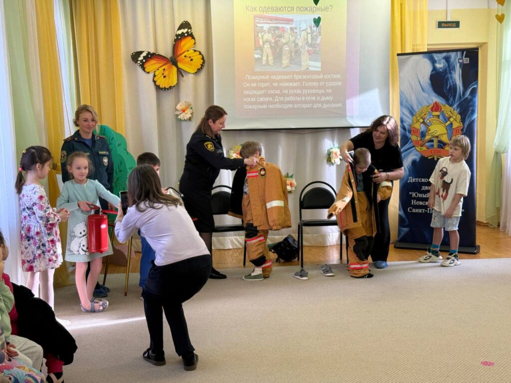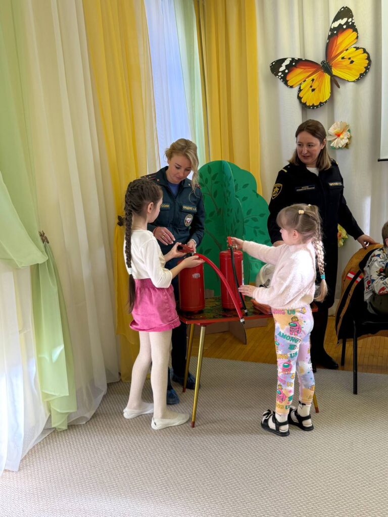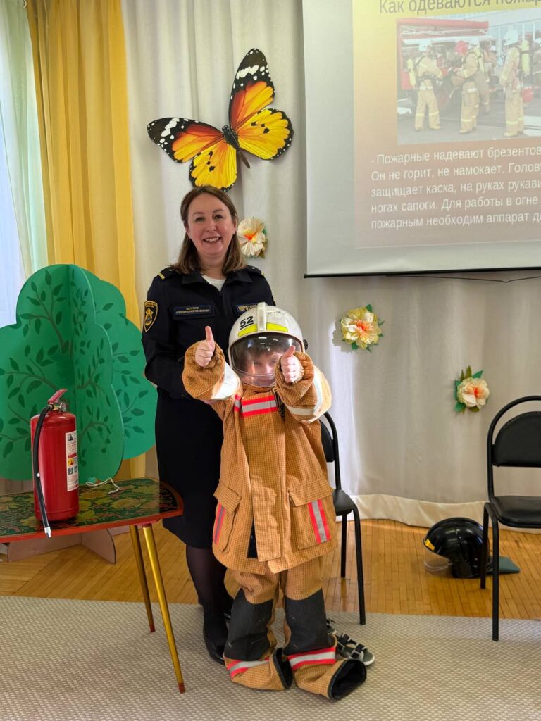 Ребята с энтузиазмом включились в процесс: разгадывали тематические загадки, надевали настоящую пожарную форму и практиковались в работе с огнетушителем на мастер-классе.
